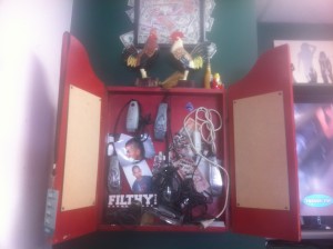 This is real cool. This is a little memory box Rich has in the shop. It has his old clippers, pictures and some other souvenirs that he collected throughout his years of being a barber. All these items have a cool little story.